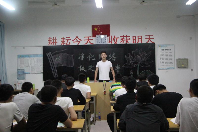 各班级通过具体案例了解了由于沉迷于网络,浏览网络的不良信息给自己、家庭和社会带来的危害;并用身边的案例来教育大家;在班会上播放了有关网络散布谣言的新闻视频资料,并对典型事例的危害性进行了分析,使同学们明确了网络散布谣言等相关现象的严重性性,在班会上,组织全体学生学习了学院团委下发的“净化网络空间,争做文明使者的倡议书”。