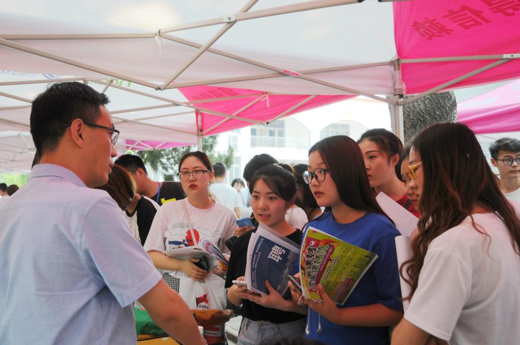 为切实做好MG冰球突破官网毕业生就业工作,大力构建毕业生与用人单位的交流平台,积极为用人单位输送应用型人才。6月7日奎文校区隆重举办了国际商务学院2018年校园专场双选会。学院领导对此次招聘会高度关心和支持,学院副院长贺志强及招生就业处负责同志到双选会现场检查指导。