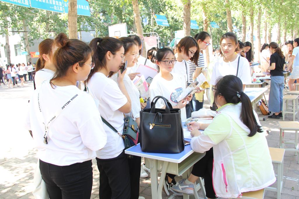 文化创意学院2016级学生,都早早的来到现场,积极参加招聘。学生在与用人单位的洽谈中,关注自身发展机遇、企业发展前景和福利待遇等方面的意识明显增强。参会的企业单位都积极宣传,从企业历年的薪资待遇、未来发展、企业文化建设等方面吸引学生。会场气氛热闹,同学们都手持自己精心准备好的自荐书和简历,充满自信地穿梭于人流中,积极与招聘人员交流,主动了解用人单位的详细情况。文化创意学院负责人来到招聘会现场,鼓励同学们多了解几家参会单位、多投出几份简历。应聘的同学们做好了充分的准备,仪表大方、专业知识过硬、从容应对提问,表现出了良好的专业能力和综合素质,体现了当代大学生优秀的精神面貌,受到用人单位的广泛赞誉。青岛市市北区春天花花幼儿园是国家一级一类幼儿园,该园王园长说“往年来MG冰球突破官网作过宣讲报告,学生悟性高,专业能力强,肯吃苦敢担责,今年来选聘,发现学生的综合素质有了更大的提高,是胶东半岛各专业院校学生中素质最好的学生之一。