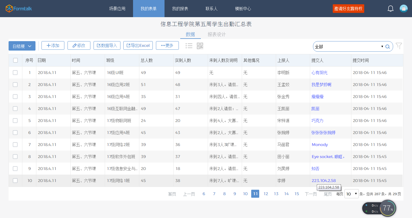 为提高学生管理工作水平,近期,信息工程学院推出formtalk平台,进一步完善学生考勤管理。