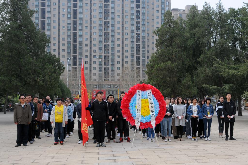 五年制高职部党支部负责同志和党员师生代表60余人,怀着无比崇敬的心情来到潍坊烈士陵园。在烈士纪念碑墓前,全体师生手捧自制白色小花,整齐列队,一起高唱国歌。学生代表向革命烈士纪念碑敬献了花圈,全体师生瞻仰了烈士墓,集体向革命烈士默哀,并把白花放到烈士墓前,深切悼念为人民解放事业、为建设和保卫祖国英勇捐躯的革命先烈。庄重而简单的缅怀仪式后,讲解员为师生们讲述了革命先烈们为中国革命胜利抛头颅、洒热血的英勇事迹。