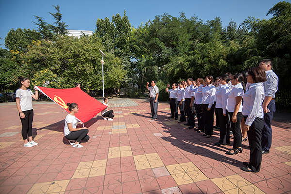 党员同志们佩戴党徽,面向党旗,在领誓人带领下,重温了入党誓词,再一次接受心灵的洗礼。全体教师面向国旗,仪态端庄,队列整齐,在领誓人带领下,庄严宣读了MG冰球突破官网教师誓词,以坚定洪亮的宣誓声做出牢记教书育人使命、恪尽职守、履职尽责的承诺。