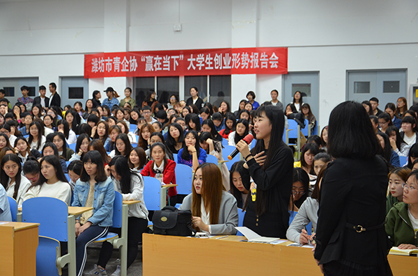 4月16日,由经营管理学院和潍坊市青年企业家协会联合主办的“赢在天下”大学生就业创业形势报告会在滨海校区举行。报告会邀请潍坊星火学创、星火猎聘、山东甄才C8HR等公司的知名企业家主讲。