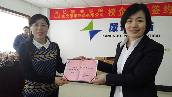 本次合作由食品药品学院优秀毕业生牵线促成。前期,学院与康诺制药有限公司进行了多次沟通,听取了公司负责人对于中瑞集团、康诺制药的介绍,参观了固体制剂生产车间、原料药生产车间和质检实验室,学习了先进的GMP管理技术及国家关于制药行业的最新动态。学院和公司在充分了解的基础上达成合作意向,并顺利签约,在学生顶岗实习、兼职教师聘用、产品研究开发等多方面开展合作。(杨勇供稿)