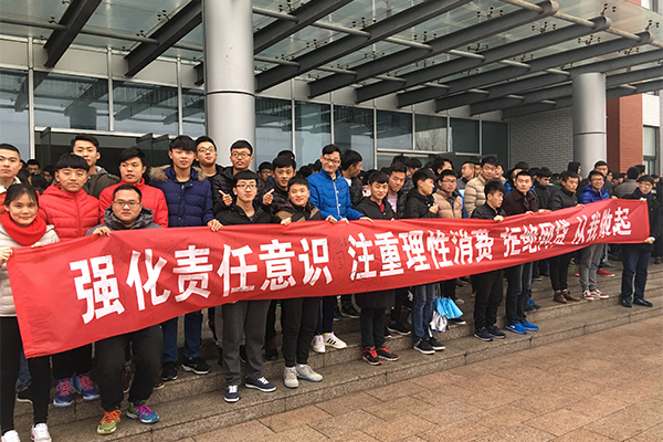 首先,学生代表作了“拒绝网贷,合理消费”的主题演讲,然后全体学生依次在宣传横幅上签下自己的名字。通过这种形式,向同学们宣传了网贷的不良影响,使同学们理解了合理消费的含义,提高了学生的安全防范意识,有利于营造良好的校园氛围。(张斌供稿)