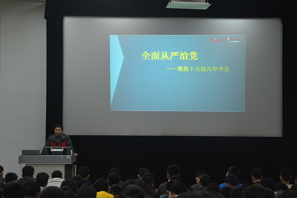 12月11日晚,汽车工程学院举办六中全会精神专题讲座。本次讲座由该院张斌老师主讲,2015级全体学生参加。