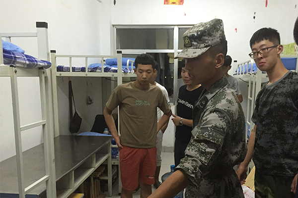汽车工程学院军训教官进宿舍指导内务整理