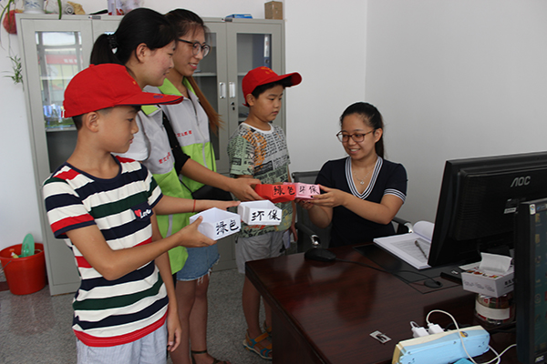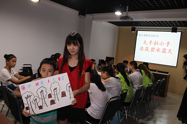 围绕“大手牵小手,共筑碧水蓝天”这一环保主题,师生们分别从“增强环保意识,节约资源能源,绿色生活,循环再生利用,绿色出行”等方面为社区的孩子们进行了公益讲座。志愿者们还带领孩子们绘制并张贴环保主题海报,组织社区的孩子们开展废物利用手工艺品制作,社区卫生清理等活动,受到了社区负责人及居民的一致好评。