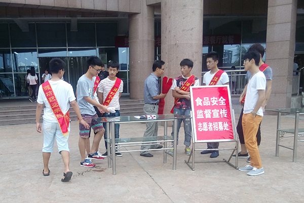 6月20日,饮食服务中心组织了食品安全监督宣传志愿者招募活动。活动中,学生报名踊跃,有近千名学生报名参加,饮食服务中心从中择优选拔了30名学生作为志愿服务者。随后,饮食服务中心负责人对志愿者进行了培训,明确了工作任务,提出了工作要求,安排尽快开展工作。