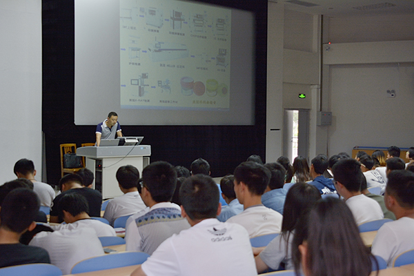 6月22日下午,机电工程学院邀请潍坊滨驰电子科技有限公司高级工程师刘君伟在滨海校区举办了SMT技术专业知识讲座。该院2015级和2014级应用电子技术专业全体同学和其他专业部分学生代表参加讲座。