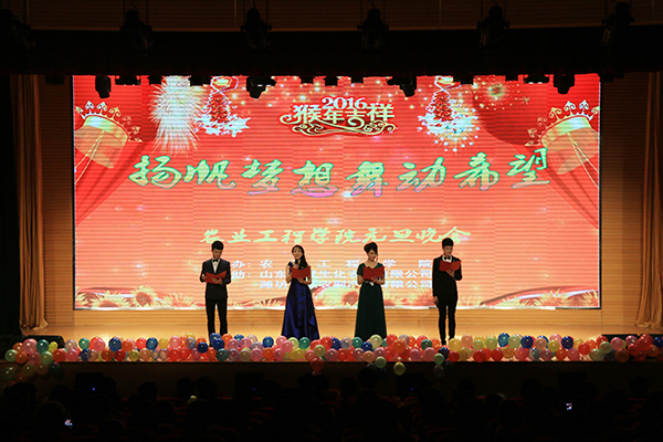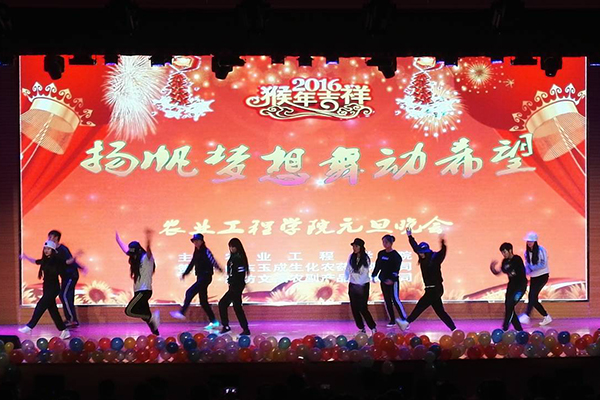 12月21日晚,一曲富有古典韵味的舞曲《青花瓷》拉开了农业工程学院“扬帆梦想,舞动希望”2016年元旦晚会的帷幕。学院各职能部门及二级学院负责同志、教职工与农业工程学院全体师生在图书馆报告厅欢聚一堂,共同庆祝即将到来的2016年。本场晚会得到了山东玉成生化农药有限公司、潍坊文杰农副产品有限公司的大力支持。