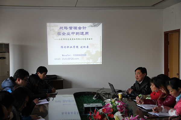 12月5日,经营管理学院科技服务团队的有关老师,利用周末时间,到校企合作单位山东龙威实业有限公司开展服务活动。该公司的高管及财务、营销人员50余人参加了活动。