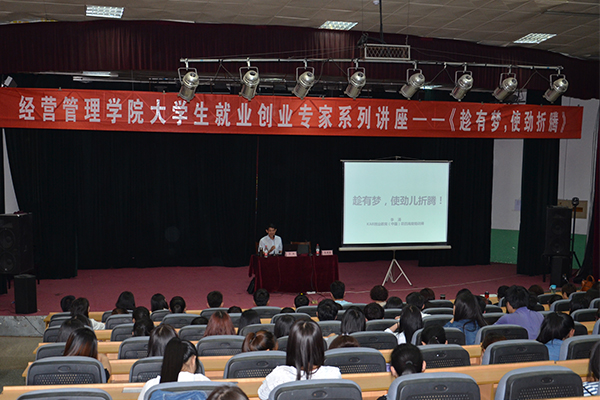 李涛教授以“趁有梦,使劲折腾”为题,从“我们为什么选择创业和中国需要什么样的创业者”谈起,结合我国目前的就业形势、各项鼓励和支持创业的方针政策,从创业的定义和成功实例、创业的基本程序、成功创业者应具备的素养和能力、创业项目的分类等几个方面进行了全面的讲解和分析。