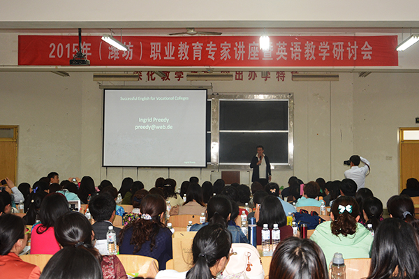 4月23日,国际商务学院特别邀请德国职业英语教育专家Ingrid Preedy女士,为该院“成长讲坛”作职业教育主题讲座。该院全体师生参加了讲座。
