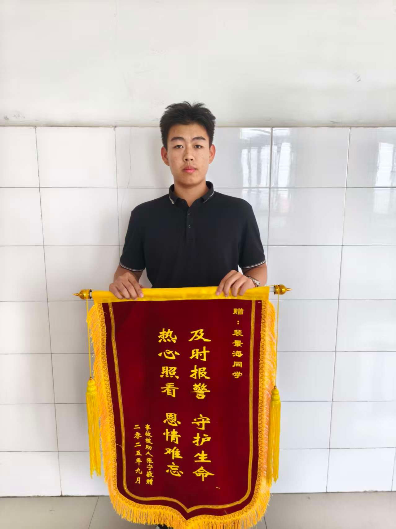 9月28日,经多方打听,伤者成功联系到裴景海,专程向其送上锦旗与感谢信,高度赞扬他在危急时刻挺身而出、见义勇为的高尚品德。裴景海表示,当时只是出于本能伸出援手,作为新时代大学生,遇到此类情况挺身而出是应尽的责任。(王保兴供稿)