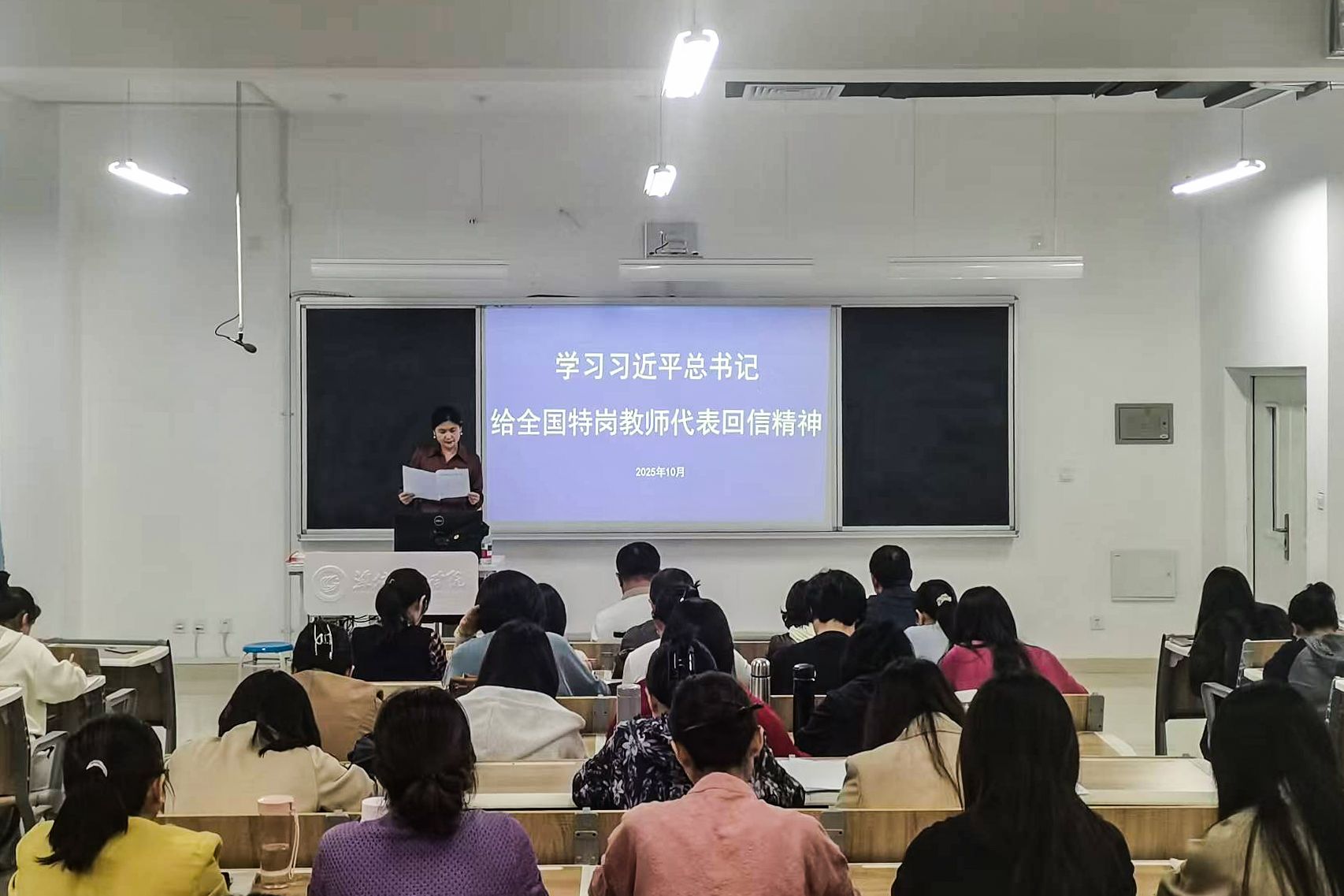 最后,她结合工作实际,对全体教师提出要求,要将学习习近平总书记回信精神与学习党的二十大精神、教育家精神相结合,深刻把握教育的根本任务和教师的使命担当,强化师德实践,将师德师风融入课堂教学、学生管理、科研创新等各个环节,做到以德立身、以德立学、以德施教。