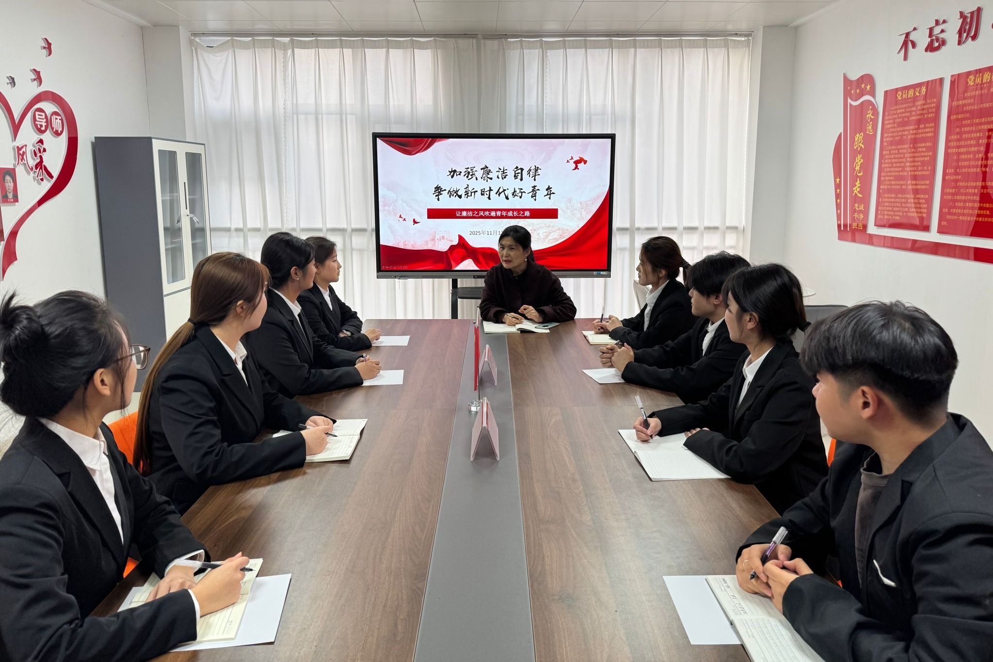 为深入推进校园廉洁文化建设,引导青年学生树立廉洁自律意识,11月12日,国际商务学院党总支负责人走进蕙兰社区,以“加强廉洁自律 争做新时代好青年”为主题,为党员发展对象和部分入党积极分子开展廉洁党课宣讲。