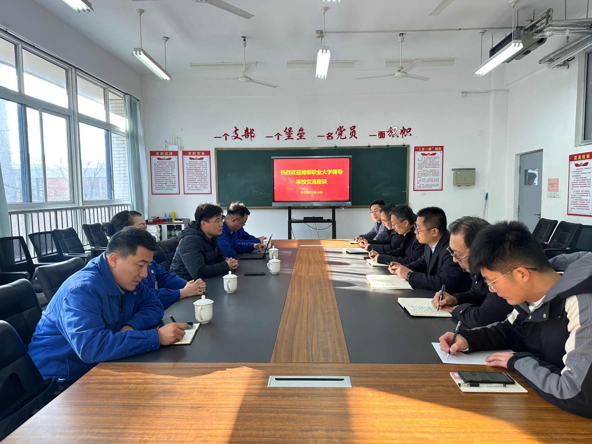 宣讲期间,汽车工程学院党总支书记、机电工程学院相关负责同志及相关教师与企业一行进行交流座谈,座谈会上,汽车工程学院党总支书记与企业相关负责人交流了潍柴现代产业学院建设的基本情况,对产业学院成立以来的建设经验与合作成效进行了梳理总结。