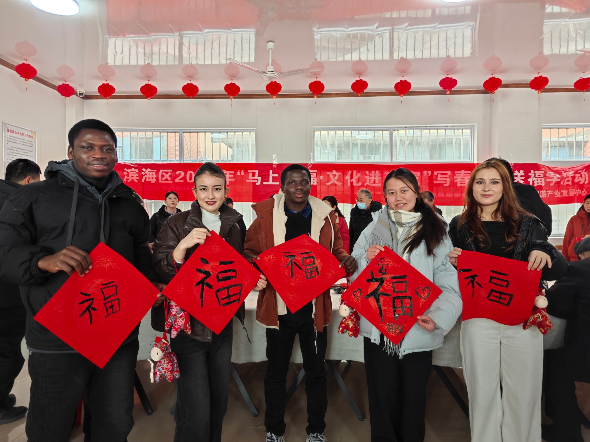 时值新春,年意盎然。为使国际学生沉浸式体验中国传统节日氛围,2月5日上午,国际教育学院组织来自土库曼斯坦、塔吉克斯坦、加纳等国家的国际学生参加滨海区“海洋大集”暨文化进万家活动,亲身感受中国春节的独特魅力。