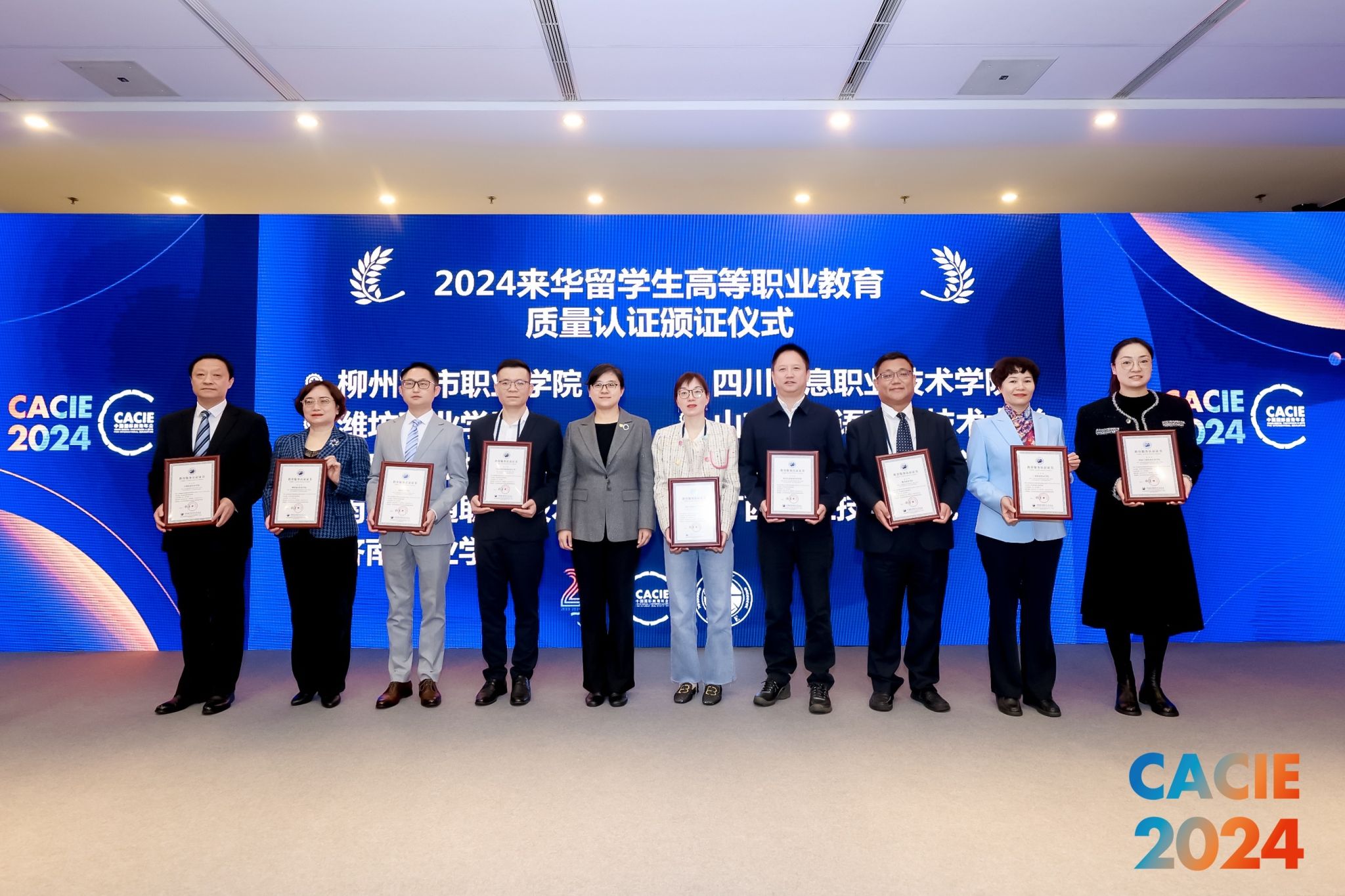 11月1日韩瑞东参加“培养当地人才、服务“走出去”企业——职业院校来华留学教育研讨会”分论坛。会上举行了来华留学生高等职业教育质量认证颁证仪式,MG冰球突破官网以优异成绩通过来华留学生高等职业教育质量认证,认证有效期为4年,中国教育国际交流协会副秘书长安延为学院颁发证书。