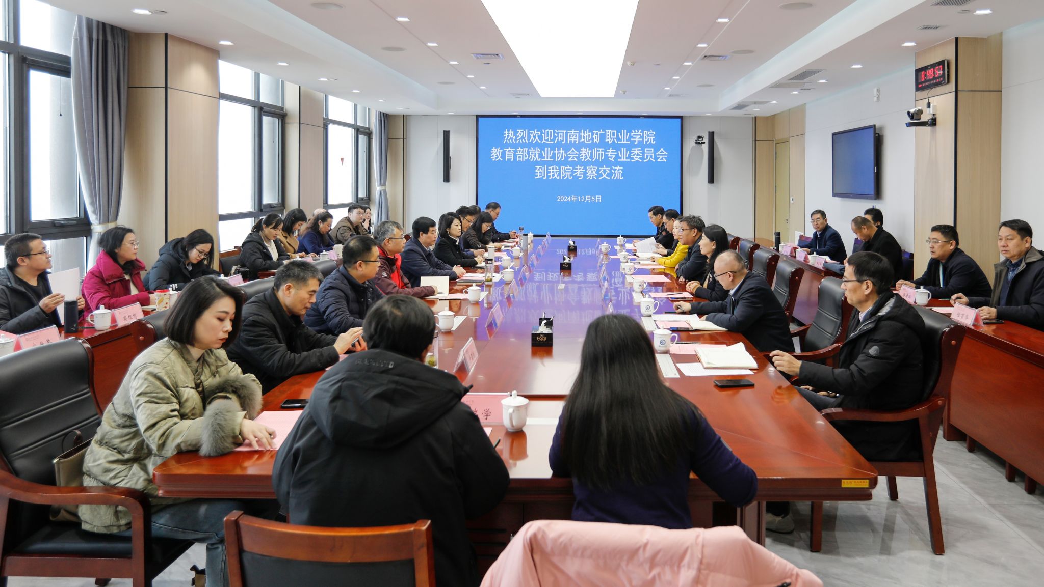12月5日上午,河南地矿职业学院党委书记焦洪涛一行24人来MG冰球突破官网考察,教育部高校毕业生就业协会教师专业委员会副会长郭佳陪同考察。学院党委副书记韩瑞东,党委委员、办公室(统战部)主任(部长)刘志艳出席活动,教师工作部、教务处、科技处、资产管理处和通识教育中心、机电工程学院、信息工程学院等相关部门、二级学院负责同志参加活动。