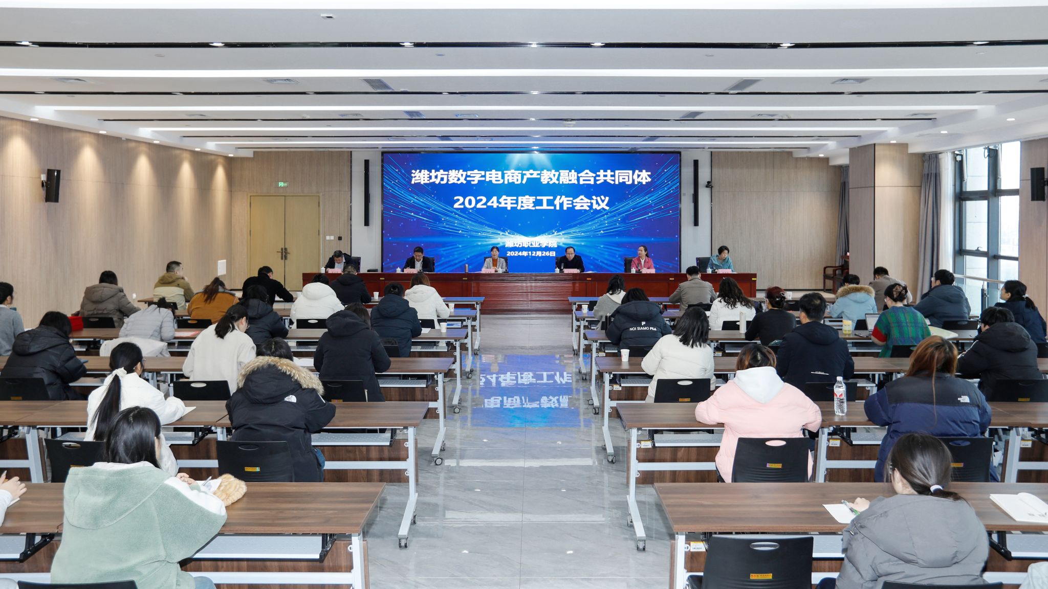 12月26日,潍坊数字电商产教融合共同体2024年度工作会议在MG冰球突破官网滨海区举行。MG冰球突破官网副院长陈美霞,潍坊市产教融合研究院副院长马玉才、理论研究中心副主任杨继红,山东省泰山教育创新研究院副院长王丽等出席会议,共同体理事长单位及成员单位代表,MG冰球突破官网科技处(产学研合作中心)、信息工程学院相关负责人及电子商务专业骨干教师共计70余人参加会议。
