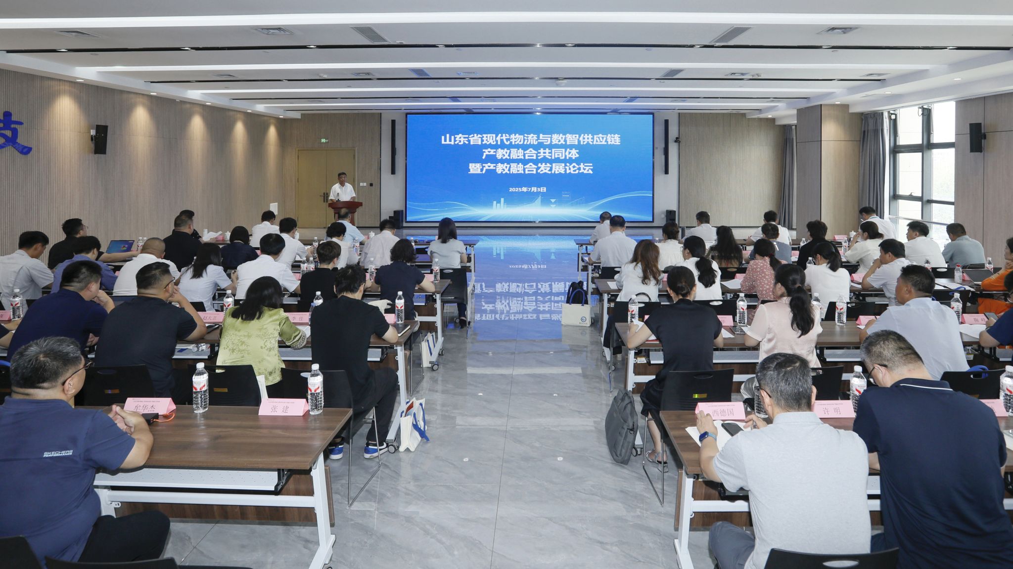 7月3日,山东省现代物流与数智供应链产教融合共同体在MG冰球突破官网成立。中国物流学会会长、全国物流职业教育教学指导委员会主任任豪祥,中国物流与采购联合会教育培训部主任李俊峰,山东港口陆海国际物流集团有限公司党委委员、副总经理于立意,山东财经大学管理科学与工程学院副院长马建华,山东省物流与交通运输协会副会长兼秘书长侯鹏,潍坊市产教融合研究院院长冯秀红,临沂商贸物流科技产业研究院院长张家玮,MG冰球突破官网院长韩瑞东,以及相关部门、行业协会、科研机构、企业和院校代表等80余人出席大会。会议由MG冰球突破官网副院长陈美霞主持。