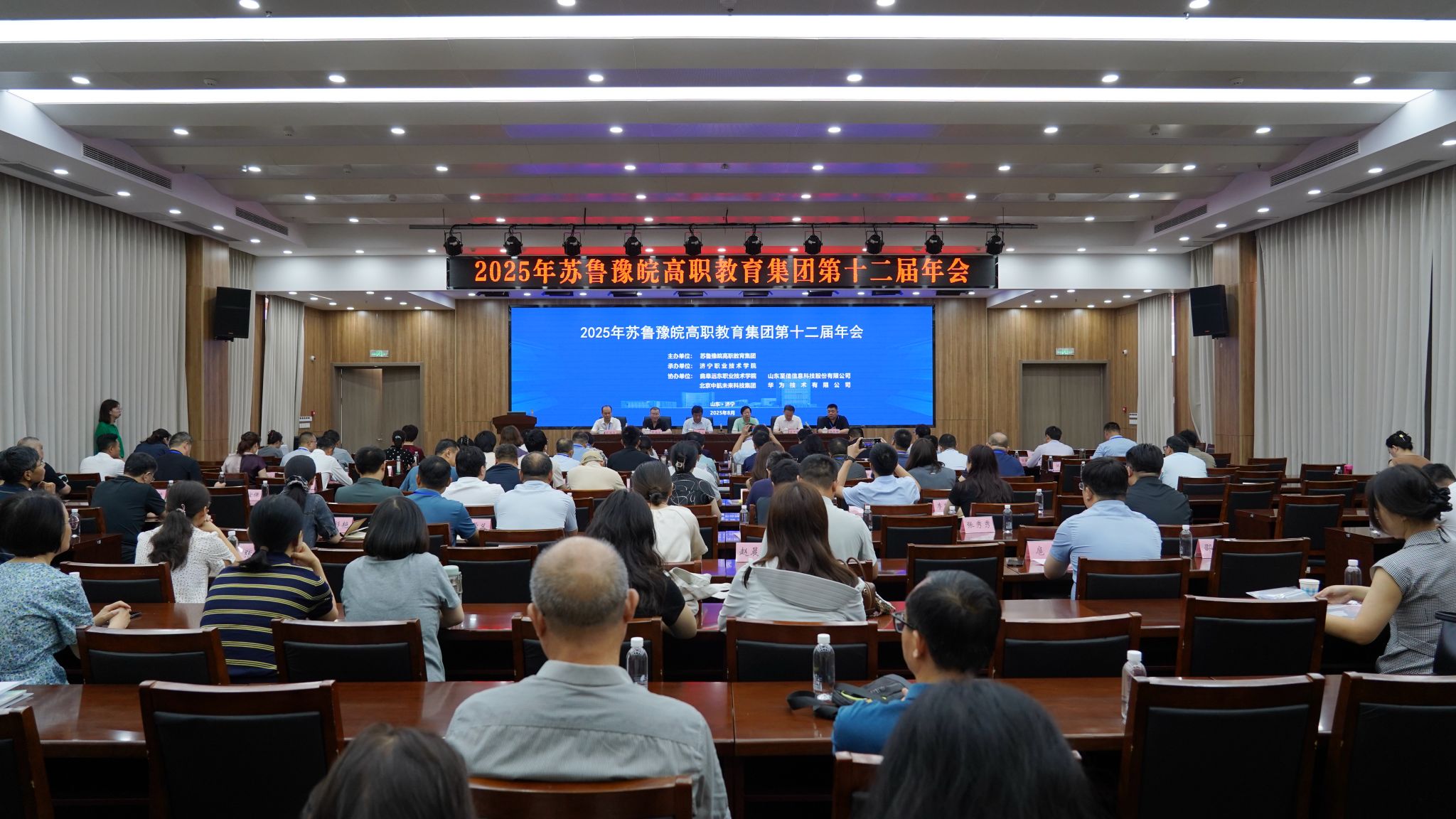 8月13日,2025年苏鲁豫皖高职教育集团第十二届年会在济宁职业技术学院召开。本次会议主题为“与时俱进,改革职业学院管理机制”“与时俱进,精准打造产教融合项目”。全国高等职业学校校长联席会议主席张慧波及中国职业技术教育学会相关领导出席会议。来自江苏、山东、河南、安徽四省38所职业院校、12家企业代表参会,另有15家职业院校线上参会。学院副院长陈美霞受邀参加会议。
