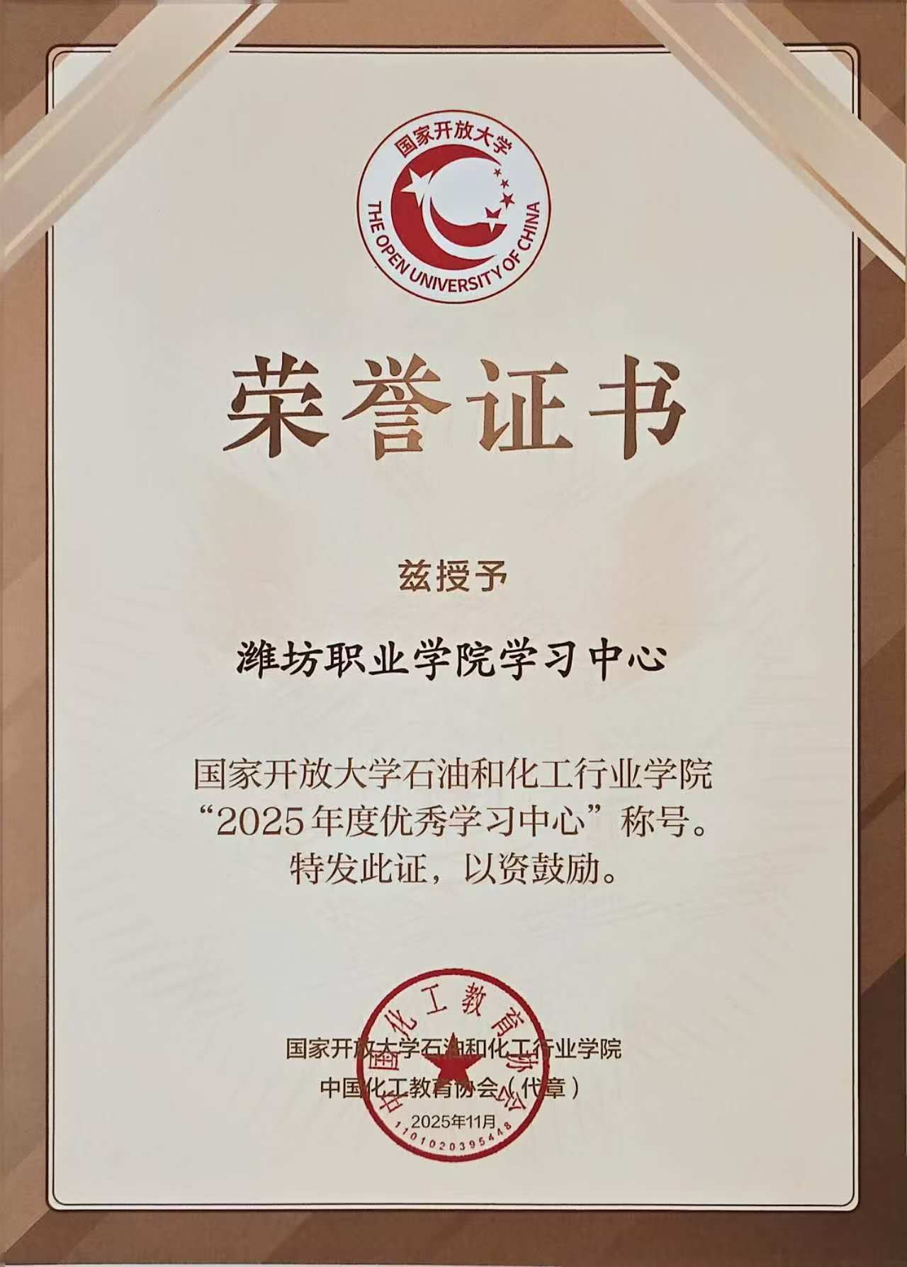 学院连续四年获评国家开放大学石油和化工行业学院优秀学习中心