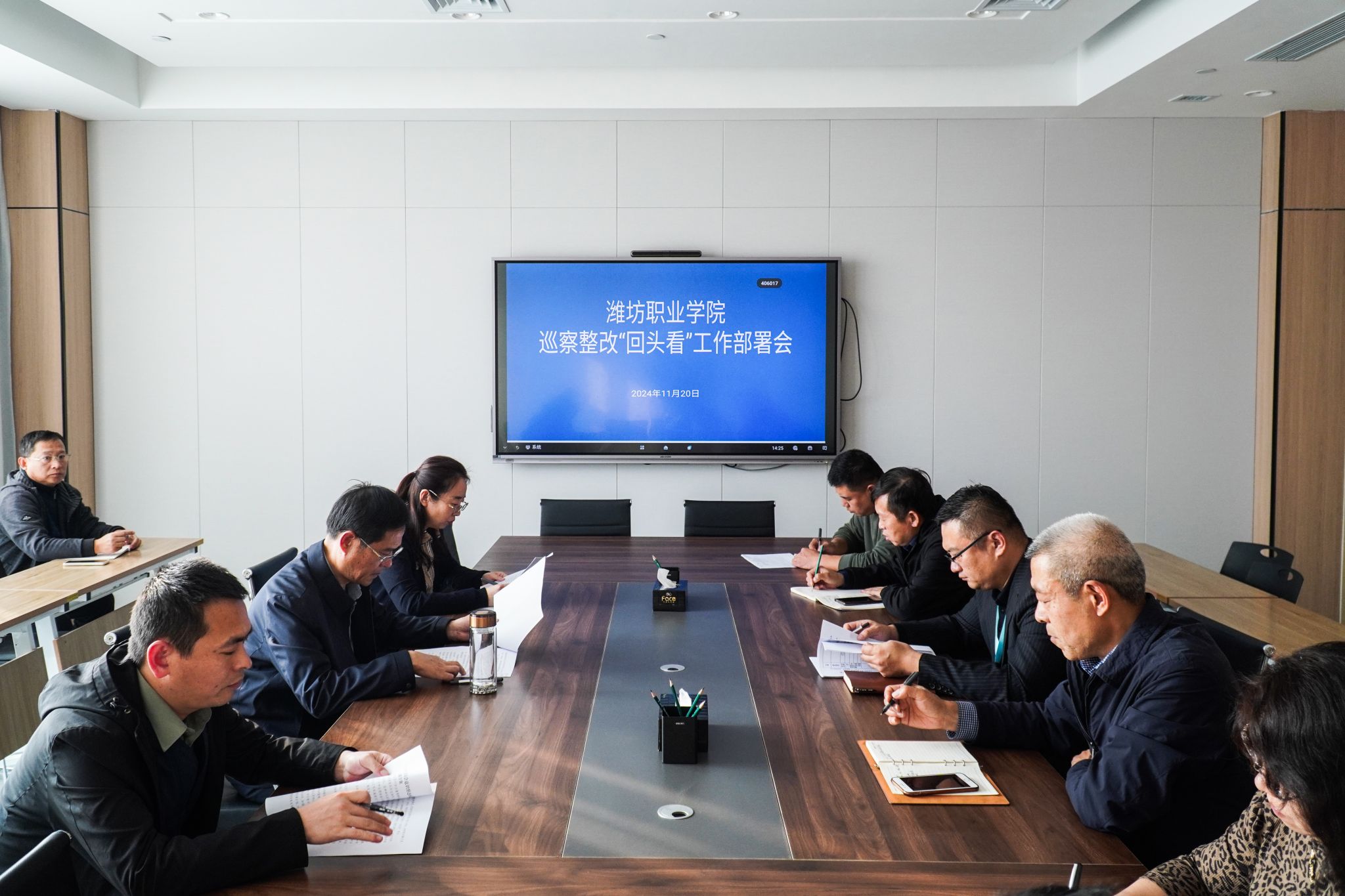 党委巡察整改“回头看”检查组组长及成员,组织人事处、财务处、继续教育学院、农林科技学院等4个部门(二级学院)负责同志参加会议。(王洪山供稿)