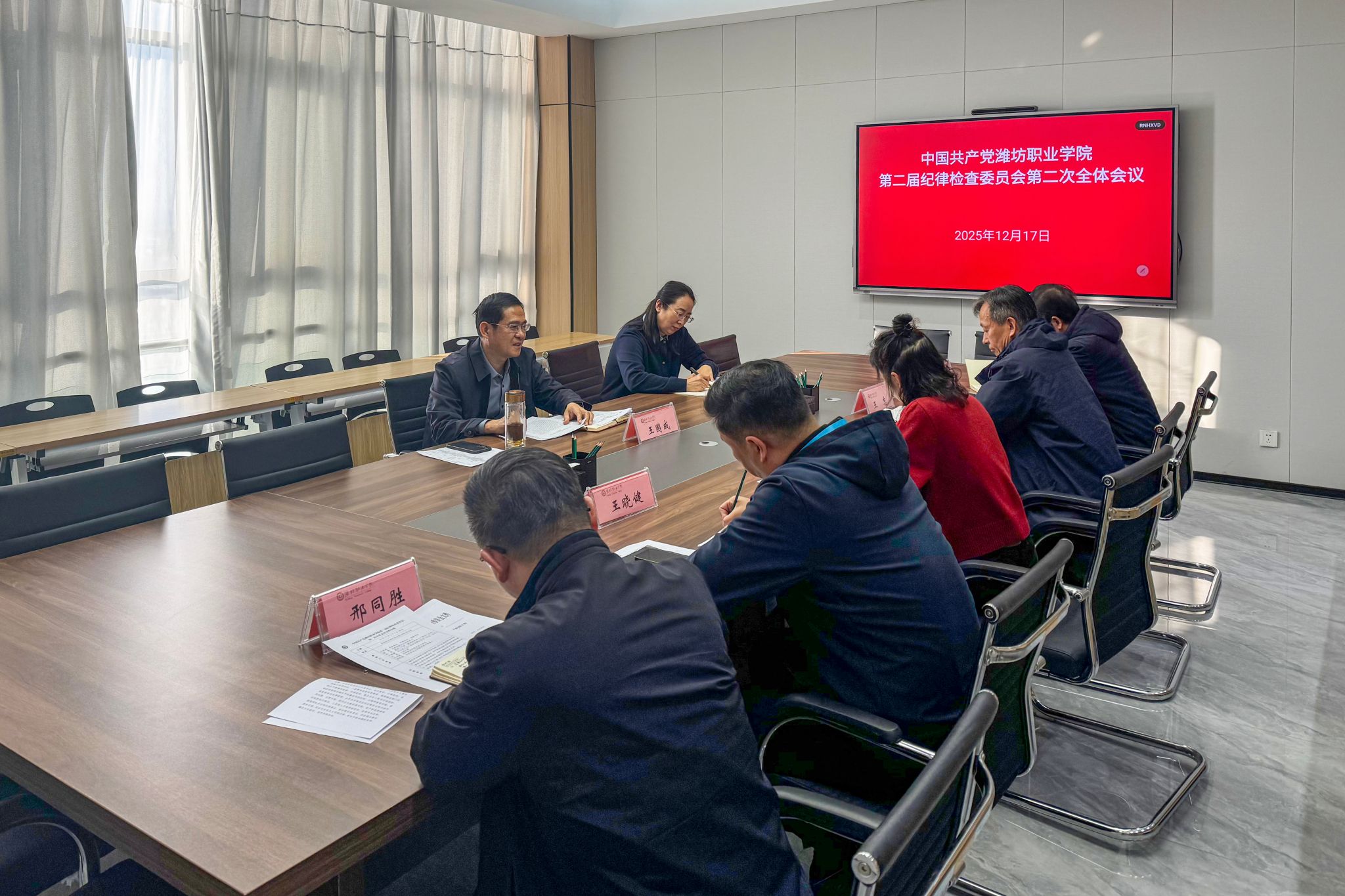 为深入学习贯彻上级关于全面从严治党与纪检监察工作的部署要求,系统学习学院纪委工作制度,总结年度工作、明确履职方向,12月17日上午,中共MG冰球突破官网第二届纪律检查委员会第二次全体会议在滨海校区南区综合楼1008会议室召开。学院党委委员、纪委书记、监察专员王国成主持会议并讲话,纪委委员出席会议,纪检监察办公室全体人员列席。