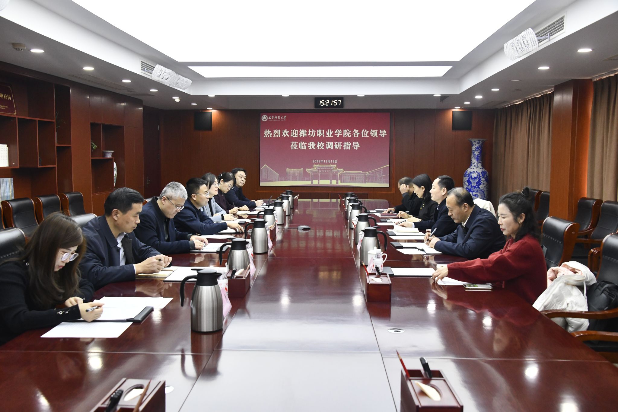 活动期间,王浩率队赴山东理工职业学院、济宁职业技术学院、曲阜师范大学考察学习。山东理工职业学院党委书记李洪文、校长张隆海,济宁职业技术学院党委书记高广立、校长李中国,曲阜师范大学校长张洪海、副校长李登旺出席座谈会。双方围绕党建、师资队伍建设、内部治理体系、专业建设及校友工作等议题进行了交流探讨。(耿晓哲供稿)