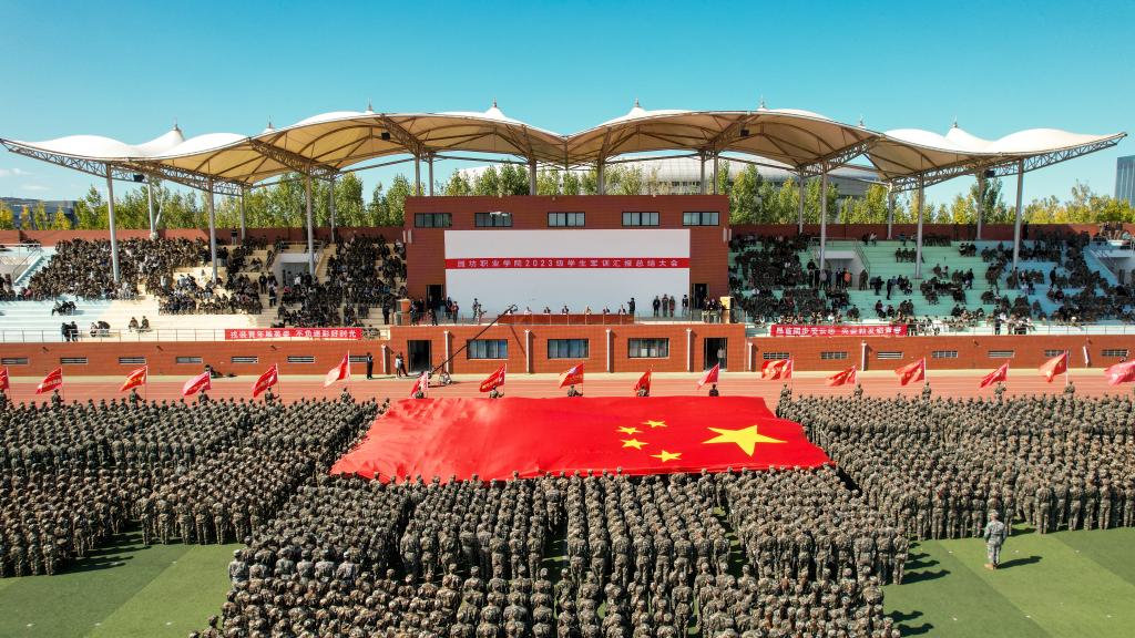 10月20日上午,学院2023级学生军训汇报总结大会在奎文、滨海两校区体育场举行。驻潍部队某部领导,学院党政领导班子成员出席并在主席台就坐。全体教官,学院有关部门和二级学院负责人、辅导员以及全体新生参加大会。韩瑞东书记代表学院向承训部队赠送锦旗。